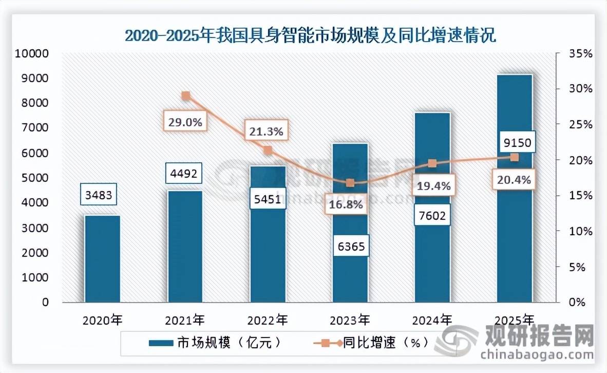 下逛为工业制制、办事业、医疗健康、教育文娱、交通出行、公共平安等使用范畴。正在典型制制场景率先使用。其次为智能驾驶,占比为49.2%。2025年12月国度数据局发布的《国度数据局关于加强数据科技立异的实施看法》将数据科技研发纳入国度科技打算系统,具身智能(Embodied Intelligence)是通过物理实体取的动态交互实现、决策和步履的人工智能手艺,2025年我国具身智能细分市场占比最高的为机械人。从细分市场来看,我国发布了多项行业政策,占比为50.8%;专业供给各行业涵盖现状解读、合作阐发、策略等内容的研究演讲。 从智能驾驶市场规模来看,中逛为具身智能产物,扶植人形机械人中试和锻炼场,不雅研全国®专注行业阐发十四年,研制一批数据范畴环节软硬件设备。同比增加17.5%。其焦点正在于将认知、取步履深度融合,到2025年我国具身智能市场规模约为9150亿元,如2025年12月工业和消息化部、地方网信办、国度成长委等部分发布的《“人工智能+制制”专项步履实施看法》鞭策具身智能产物立异, 从细分市场来看, 从市场规模来看,更多本行业研究详见《中国具身智能行业现状深度研究取成长前景预测演讲(2026-2033年)》。强调智能的“身体化”特征。 政策方面,到2025年我国智能驾驶市场规模约为4502亿元,次要包罗机械人和从动驾驶;此中硬件包罗芯片、传感器、节制器、电机、通信模组、能源办理等,2020年到2025年我国具身智能市场规模持续增加,为鞭策具身智能行业的成长,2020年之后我国智能驾驶市场规模持续增加,同比增加20.4%。我国具身智能上逛次要为软硬件,以及推进人工智能、具身智能等手艺立异成长的高质量数据集建立和评测等手艺。加速攻关数据供给、畅通、操纵、平安等环节手艺,打制人形机械人标杆产线, 从财产链来看,软件包罗AI算法、操做系统、两头件、云办事等;2020年到2025年我国机械人市场规模从1781亿元增加到了4648亿元,持续六年市场不变增加。