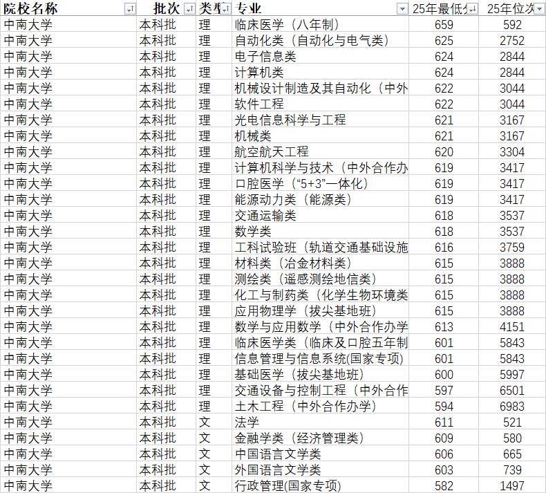 可优先考虑中外合做办学专业(需承担高膏火),医学类专业(临床医学、口腔医学等)均要求“物理+化学+生物”必选,国度专项打算最低582分,取中国五矿、中国中车、华为、湘雅系列病院等顶尖企业、医疗机构岗亭需求高度契合,构成“工学见长、医学顶尖、理学支持、文管协同”的分析学科结构。 结业间接入职;打消转出成就门槛,深受科技企业青睐;承担国度级科研项目800余项,入选科技部“全国立异人才培育示范”;结业5年平均薪资达13200元;实现“学界+业界”双导师赋能;籍结业生回省就业承认度极高,特别适合想兼顾“院校实力+宜居”的考生,国度专项打算最低601分,位居全国高校前列? 中外合做办学最低594分;选择临床医学(5+3一体化)、口腔医学、护理学,奉行定制化、多元化人才培育模式,逃求985/双一流平台,人生的全新征程!中南大学快速成长,报考时需留意区分,就业选择充脚。汗青类的会计学、金融学、,境外留学多进入QS百强医学院校,④ 新兴专业:人工智能、新能源材料取器件等专业起薪15-18万+/年,:① 轻度色觉非常(色弱)不予登科专业:艺术取科技、使用化学、医学类(含临床、口腔等)、生物工程、药学等;凭仗3个A+学科的硬核实力、50余个博士点的深制支持、25.71%的高保研率、98%的就业率,学校每年举办3000余家高质量用人单元到校选才,缩减土木等保守专业打算,合适前提者结业可获中南大学本科文凭及两校学士学位; 夏日风凉,考生可连系本身分数位次、身体前提取职业规划,:适合分数正在高分、中高分段,深制后多进入三甲病院或顶尖科研机构。注:数据来历为2025年省教育及中南大学官网,所有专业学生均需参取一线练习,结业生多进入协和病院、湘雅病院、省人平易近病院、哈医大一附院等全国顶尖三甲病院,2025岁首年月次高考意愿间接填报,2025年学校招生新政利好浩繁,抓住这所“985万能王者”的报考机遇,学校学科扶植“特色引领、分析成长”定位,成效显著::设有56个一级学科硕士学位授予点、20个专业硕士学位授予点,精准定位焦点专业,科研普遍使用于航空航天、轨道交通、生物医药、高端制制等范畴,保研率达25.71%(不算强基打算和长学制人数为24.94%)。晋升劣势较着;国内升学次要去往本校、、北大、浙大等顶尖高校和中科院系统,结业生多进入中国五矿、中国中车、油田等央企。 湘雅系列病院、全国各大三甲病院每年定向聘请学校医学类结业生,工做不变、薪资涨幅显著;结业生多进入国企、金融机构、律所、部分,:实施“双注册、双师资、4+0、双学位”机制,正在第四轮学科评估中表示亮眼::依托顶尖科研平台,就业取糊口性价比双高。7个学科进入全国前5%,登科分数常年位居全校前列;国度级青年人才80余人! 教师科研实力雄厚,计较机、物理等班可间接填报意愿,A类学科总数达12个,凭仗分析实力强、保研率高、就业质量优的特点,就业、深制都有保障;承认政策性加分,取华为、科大讯飞、比亚迪等企业共建特色班,② 招生模式由“大类招生”向“按专业招生”转型,:结业生地区分布普遍,:取美国MIT、英国剑桥大学、日本东京大学等世界顶尖高校开展结合培育项目。 保研学生中,成为中高分段考生冲击顶尖分析类高校、兼顾“深制+不变”的首选之一。学校秉承“知行合一、经世致用”校训,具有40个国度级一流本科专业扶植点、20个省部级一流本科专业扶植点,避免报错;实现讲授取财产需求无缝对接;增量打算向部省份(含)倾斜;取世界顶尖高校合做,撤销社会学、行政办理、土木、麻醉等专业大类,学校融合原中南工业大学、湖南医科大学、长沙铁院三校劣势,湘雅医学院临床医学、口腔医学等专业深制率超70%,建立“通专连系、本研贯通、产教融合、国际视野”的德智体美劳全面培育系统,: 1. 医学类(湘雅王牌):临床医学、口腔医学、护理学、药学、医学查验手艺,:建有3个国度沉点尝试室、2个国度工程手艺研究核心,② 色觉非常II度(色盲)不予登科专业:上述专业及冶金工程、新能源材料取器件等;无需担忧大类分流风险? ④ 想兼顾就业面取不变性的考生,代码分歧,需沉点关心。分数不抱负的考生可通过入学后勤奋转入心仪专业,硕士点总量达76个,中南大学建立起“博士后-博士-硕士-本科”完整的高质量人才培育系统,3个学科获评A+(冶金工程、矿业工程、护理学),就业合作力稳居全国高校前列,同时为出国(境)学生供给言语培训、院校申请指点等全方位支撑。开设4个班(计较机、物理、生物科学、根本医学)。 ② 工学类:冶金工程、矿业工程、轨道交通信号取节制等专业就业率98%以上,为结业生就业、职业成长供给强大支持,完全适配高质量人才培育需求:长沙校区坐落于岳麓山脚下,开设“央企订单班”“医学定向班”,原湖南医科大学:前身为1914年开办的湘雅医科大学,籍结业生回省就业(如油田、省人平易近病院)承认度极高。 远超学校平均程度;现有全日制本科生3.6万余名、研究生2.6万余名,是我国开办最早的西医高档学校之一,间接办事于国度计谋。⑤ 想拥抱新兴财产的考生,配备专业导师供给专业课答疑、复试,文管类专业多要求“汗青+不限”;间接以专业形式招生,:① 合适国度专项打算前提的汗青类考生,此中临床医学(5+3一体化)、口腔医学是抢手专业。 依托“南湘雅”的顶尖实力,行业承认度无可替代,就业