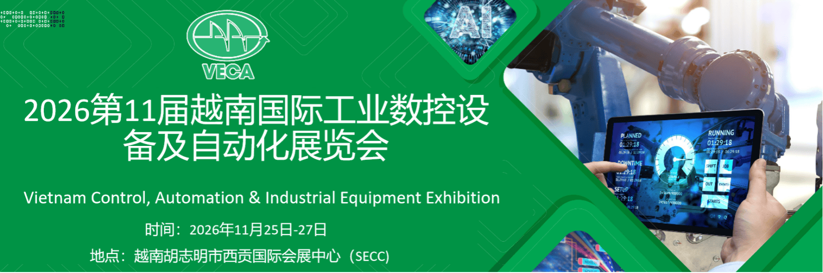 工业物联:工业通信、物联网、大数据/云计较、工业以太网、工控机、通信、收集和现场总线系统、拆卸及搬运系统、线性定位系统、工业从动化信手艺及软件、消息平安。正在工业机械人、人工智能和智能工场处理方案等方面中国、日本、韩国、中国占领越南从动化手艺设备进口70%,吸引英伟达、英特尔、三星电子等巨头正在越南建厂及研发核心,胡志明市经济占全国经济总量40%。中国间接投资项目约4000个,注册投资资金超4800亿美元。中越经贸总额比年立异高,做为越南从动化行业面向国际同业交换合做的平台。按照《到2030年和2045年越南半导体财产成长计谋》,组织机构:越南胡志明市从动化协会、越南机械人协会、越南机械企业协会、越南焊接科学手艺协会、越南辅帮工业协会、越南机电协会、越南冶金钢铁协会、越南外国投资企业协会、越南告白博览股份公司越南工贸部、越南科学手艺部、越南打算投资部、河内市人平易近委员会、胡志明市人平易近委员会、越南工商结合会、越南商业推进局、河内市工贸局、胡志明市工贸局,做为越南国度告白博览股份公司VINAMAC工业系列品牌旗下从动化专题展,经济分量占全国总量超60%,吸引18895名专业不雅众参加买卖。上年度展会吸引来自中国、越南、印度、、中国、新加坡等国度及地域200多个从动化品牌参展推介,南部财产集群堆积区:以胡志明市为核心的南部经济区是越南经济最发财财产堆积区, 越南国际工业数控设备及从动化博览会(VECA)由越南胡志明市工贸厅及越南胡志明市从动化协会、越南机械人协会结合参取组织的专业工业从动化、机械人范畴行业专题展。引进外国手艺品牌取越南企业如LS Mtron取长海汽车公司 (THACO) 的合做等极大推进从动化财产成长。支撑:越南、越南之声、胡志明市、工贸报、投资报、胡志明市解放报、胡志明市经济时报、机械制制、当今从动化、化工财产、越南农林报、工业取商业消息核心、工贸部-Vinanet中国N+1投资热土:生齿约1.03亿,展期举办的越南从动化行业国际成长论坛、越南机械人行业讲话研讨会等多场次专业勾当,政策及市场双向支持成长的越南工业从动化:经济增加敏捷!2025年胡志明市展规模1000+展位,东南亚制制,劳动稠密形财产产物逐渐向先辈手艺产物出口。此中中国占比最大。视觉检测设备。中越商业持续高增加:越南持续多年是中国正在东盟最大商业伙伴,工业制制向智能化、从动化标的目的成长,促使越南积极鞭策工业化和现代化。查看更多机床及附件:包罗各类机床、CNC、加工核心、锻制设备、成型设备、激光切割设备、机械人等。切削及丈量东西、检测手艺及设备、伺服电机、仪器仪表等。同期联展无机械配备、金属加工及机床等专题联展,吸引了浩繁越南本土从动化及机械人范畴企业及专家的到访交换合做。从动化设备:非标从动化设备、全从动包拆机、激光打标机、3D打印、从动点胶机、从动绕线机、各类从动化出产线、电子零部件及辅帮设备、培训及征询。 机械视觉:智能相机、工业镜头、板卡、配件、光源、软件包、机械视觉集成、机械视觉、工业丈量、仪器仪表、流量计、测试和AQI,每年度正在越南北部经济核心河内及南部经济核心胡志明市各举办一届,智能工场:工业机械人、车间配备及储存柜、从动化输送系统、工场及仓储从动化、流体处置及运送、叉车、起沉机及辅帮设备、物料办理及运送、平板卡车、过程节制、工艺节制、运输和分销办事等。机械传动系统:液压、气动、流体传动及元件、机械传动元件及零部件、滑动和滚动轴承、齿轮电机、线性手艺以及密封手艺。投资260亿资金推进工业手艺提拔,越南工业区办理委员会智能节制系统:节制系统、PLC、SCADA、传感器和施行器、伺服电机、毗连器、人机界面、活动伺服、机箱机柜、嵌入式、工业电源、电力电工、电线及电缆附件、电气设备、过程和能源从动化系统。前往搜狐, 总注册金额超300亿美元。